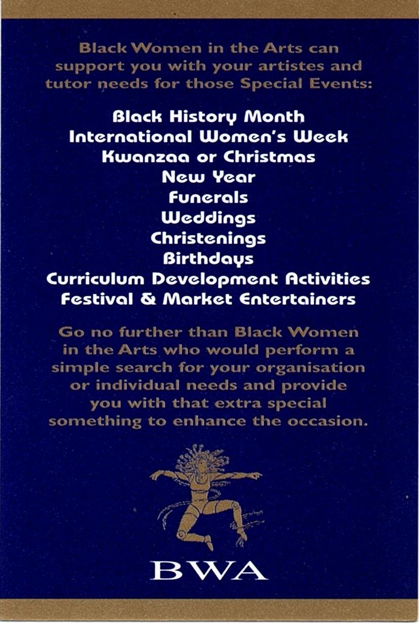 Black Women in the Arts ART SERVICE CARD FONT AND BACK PAGE
